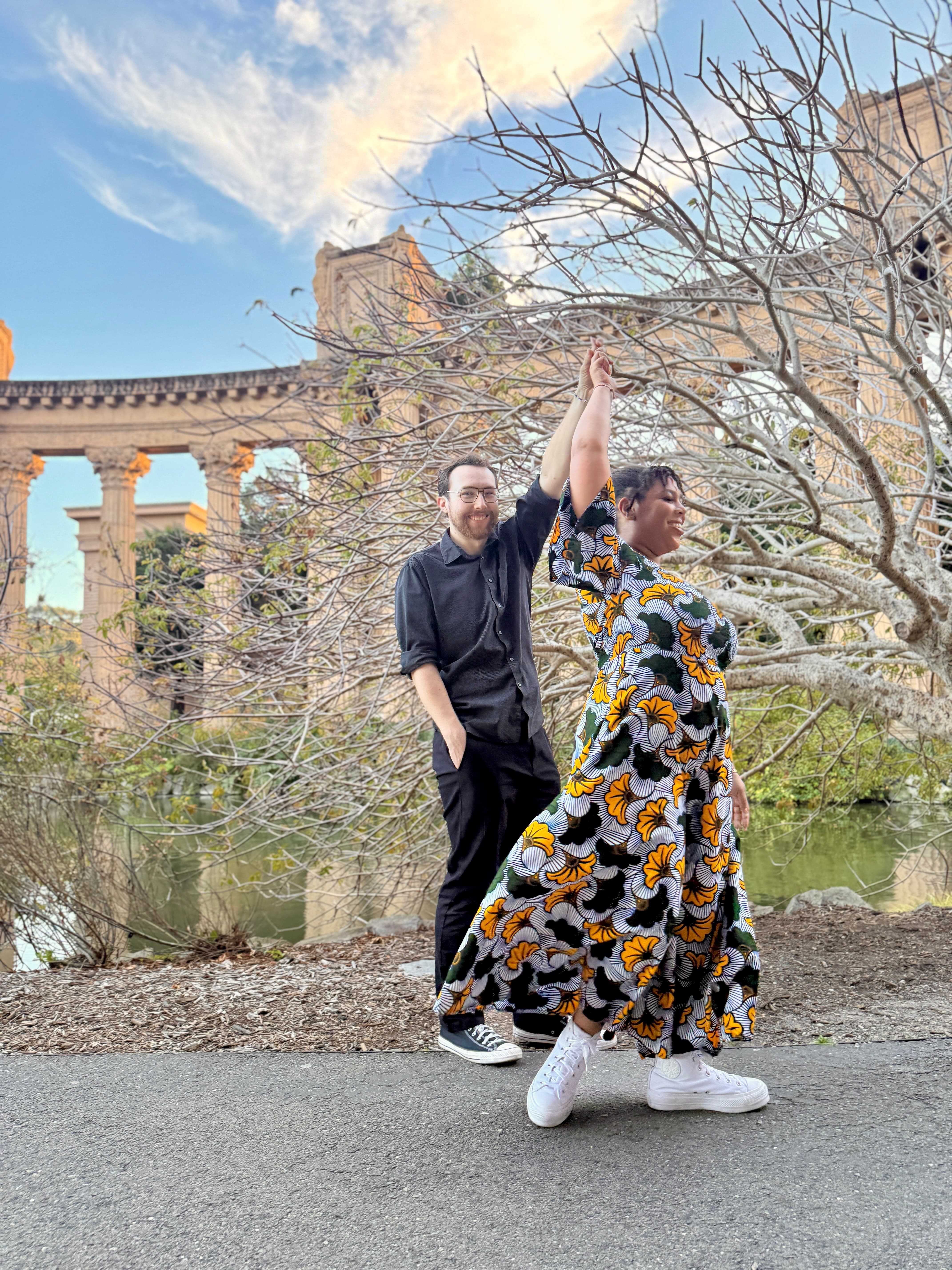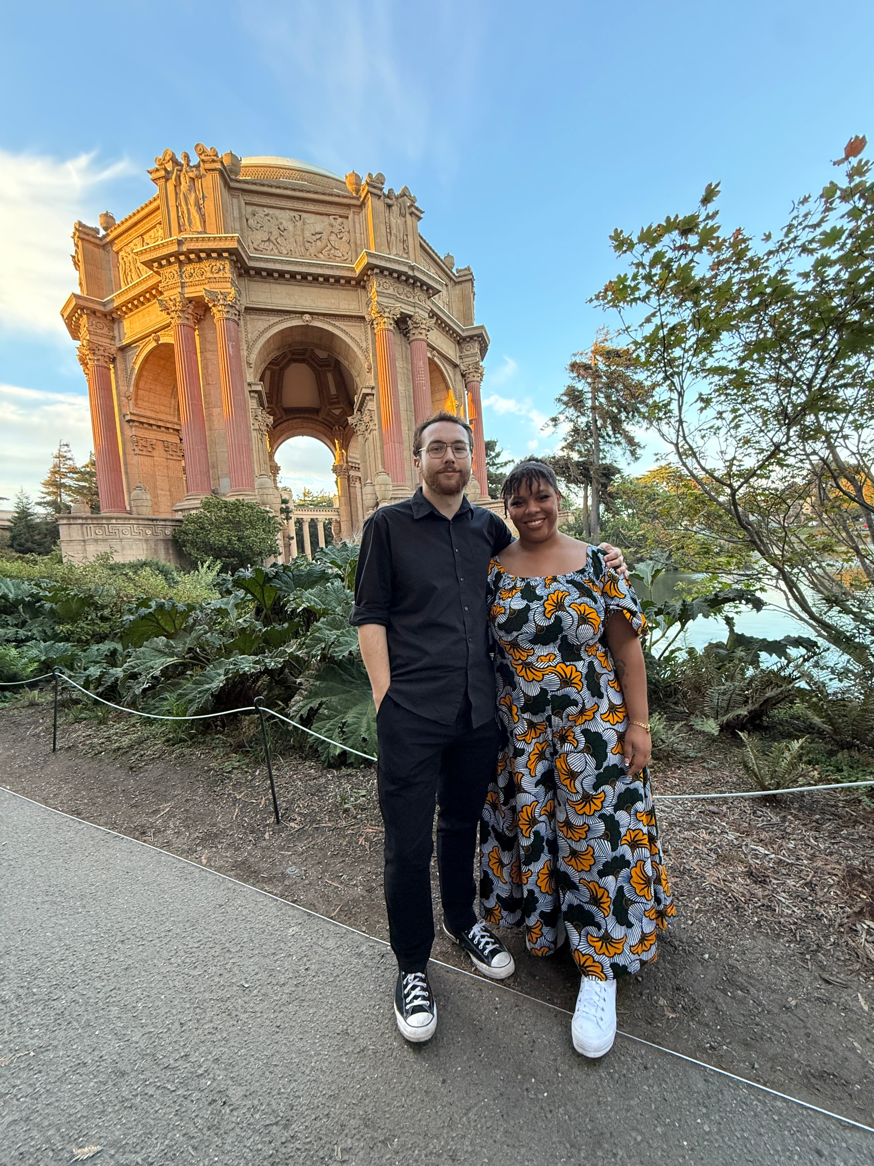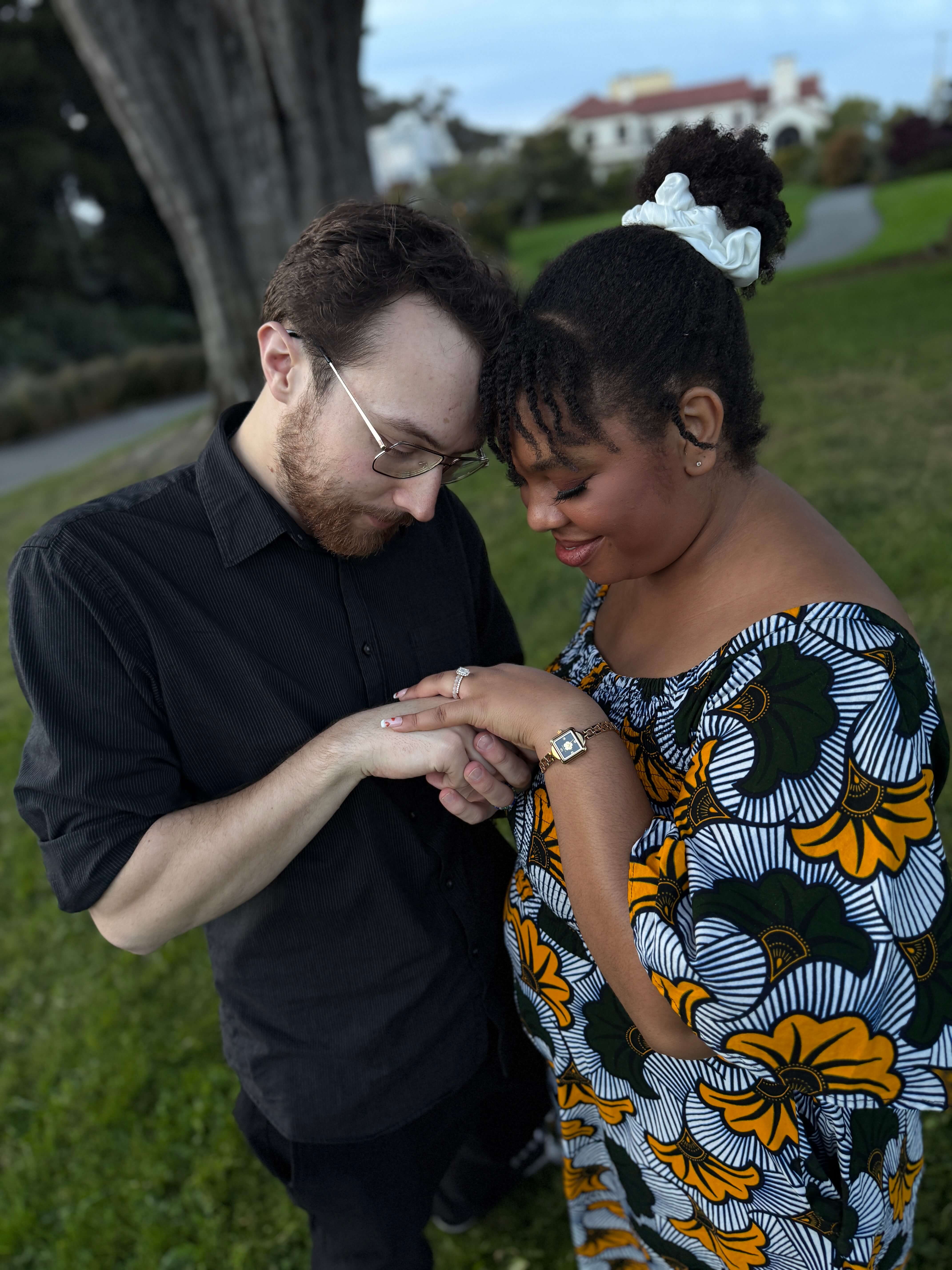 When we met in 2017, neither of us had any idea what was in store for us. We met in the common room of Josephine's dorm. Jonah's friend—who didn’t live there—had commandeered the area and frequently invited his friends over; Jonah was one of them. During COVID, we were in each other’s social pods and spent most evenings watching Avatar: The Last Airbender with our friends. Eventually, in 2020, when Josephine got Sokka, she often went over to Jonah’s apartment—because it had a yard—to hang out with him and his roommates. We started dating in February 2021, just before Josephine was set to move to Austin. Despite the risk, we decided to move together. That September, we moved across the country to Texas and began our life together. After four years, we became engaged on October 10th, 2025.